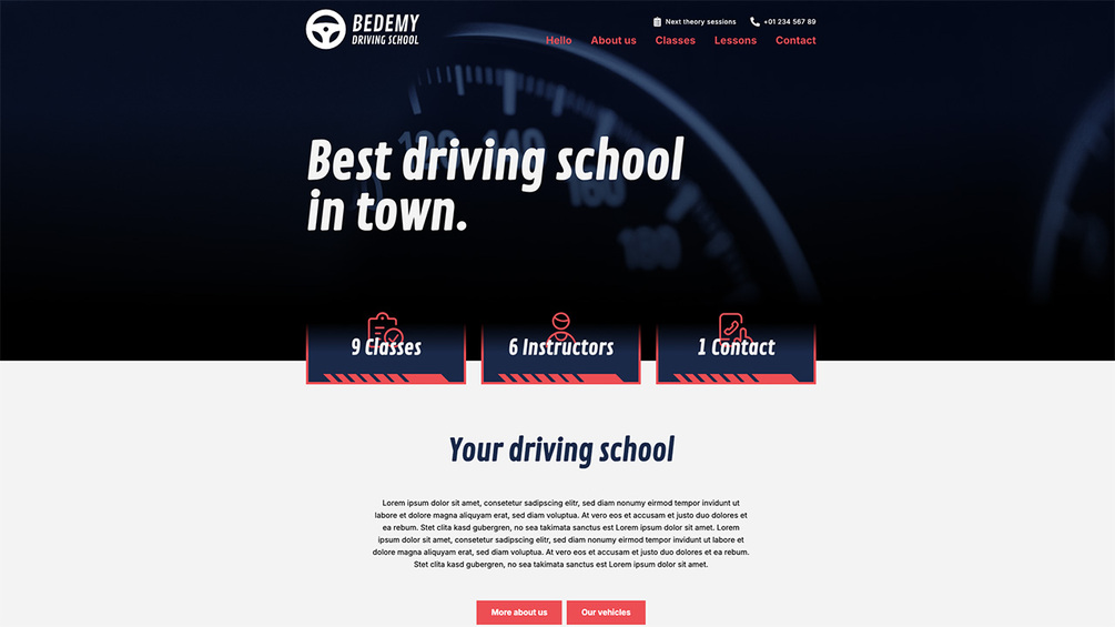 - Driving School-Centric Layouts: Tailored layouts designed to highlight your driving courses, instructors, testimonials, and more, presenting your offerings in the best possible light.